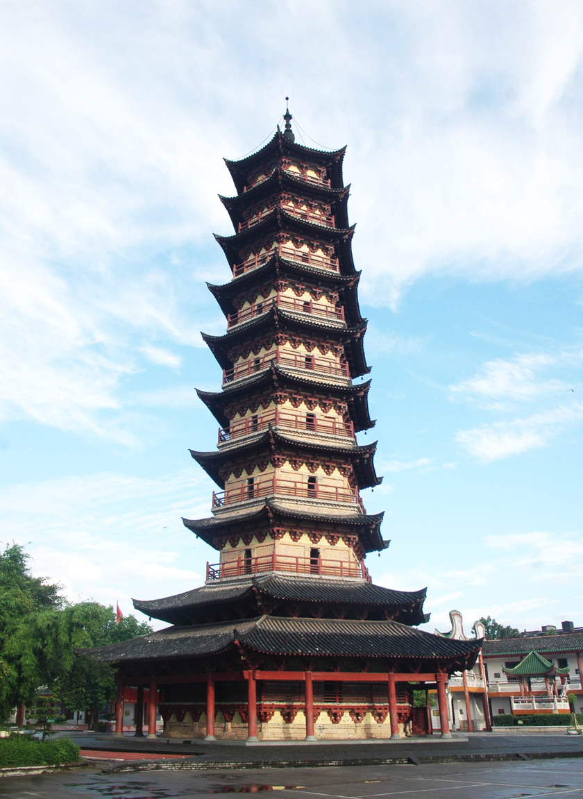 赣州市厚德路内的慈云寺塔,原名慈云寺舍利塔,始建于宋仁宗天圣元年(公元1023年),距今已有近千年的历史。是一座九级六面穿壁绕平座楼阁式砖塔,2006年公布为全国重点文物保护单位。