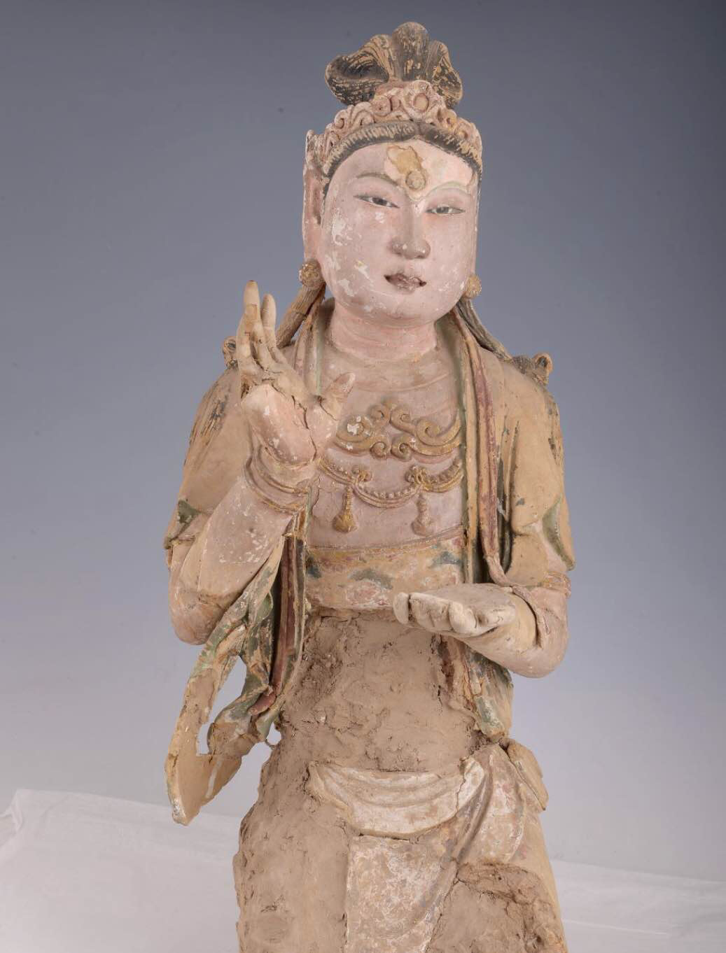 为保护好这批珍贵文物,在国家文物局、赣州市人民政府与北京首都博物馆的大力支持下,赣州市博物馆委托以王亚蓉先生为首的国家一流专业团队担任慈云寺塔瘞藏文物的修复保护工作。以“大国工匠”王亚蓉为首的专业团队耗时五年多的努力,成功修复出五代至北宋初年的彩绘泥塑、瓷塑、金漆木雕佛教造像、纸本《千佛名经》、《妙法莲华经》、纸、绢设色《观音像》、《开明禅师像》、各色供养人像及具有明确纪年的“大宝二年”款纸本写经《四分戒本》、大中祥符六年(1013)款纸本设色《灵严大圣消灾驱疫图》等珍贵文物57件。