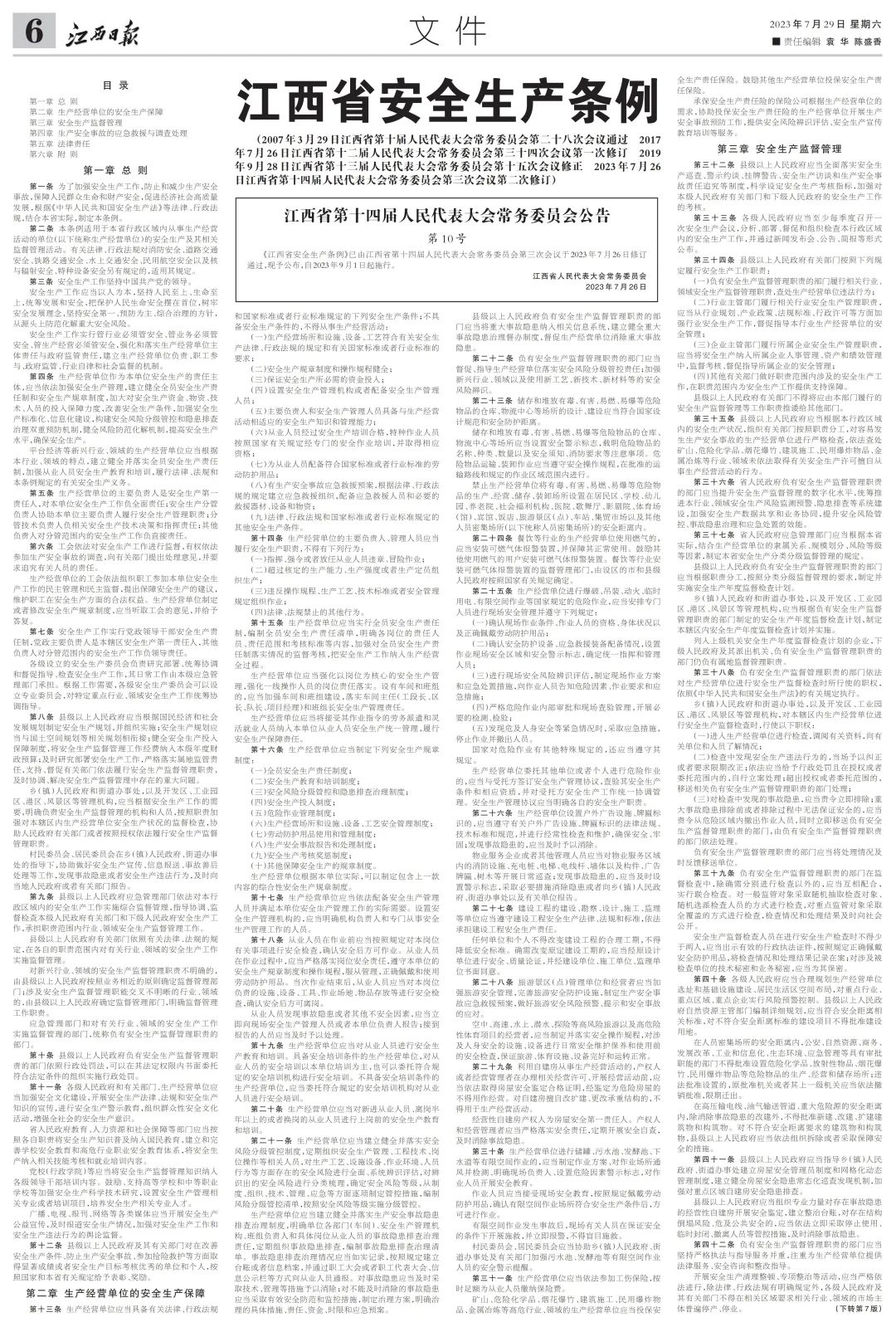 新修订的《条例》于2023年7月26日由江西省第十四届人民代表大会常务委员会第三次会议表决通过,自2023年9月1日起施行。